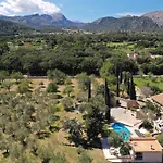 Von einer Terrasse dieser Villa in Port de Pollença aus können Gäste einen Ausblick auf den Pool genießen. Die Villa Can Bennassar In Puerto Pollensa verfügt über ein Badezimmer mit einer getrennten Toilette, einer Dusche und einer Waschmaschine. Ein Haartrockner gehören ebenfalls zur Ausstattung des Badezimmers.